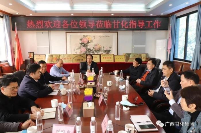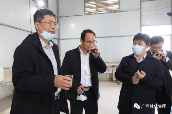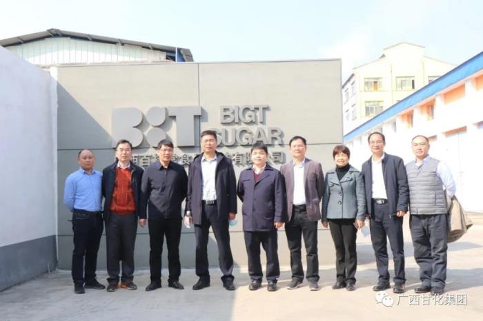 2021年1月20日上午,廣西壯族自治區(qū)糖業(yè)發(fā)展辦公室主任李文綱一行在貴港市農(nóng)業(yè)農(nóng)村局和覃塘區(qū)人民政府相關(guān)領(lǐng)導(dǎo)陪同下,到廣西甘化集團(tuán)有限公司下屬子公司廣西百桂堂食品科技有限公司調(diào)研。期間調(diào)研組深入生產(chǎn)車間現(xiàn)場開展調(diào)研工作,了解甘蔗植株水項目落地情況,協(xié)調(diào)解決項目推廣工作中遇到的實際困難。