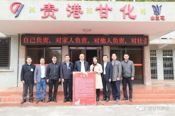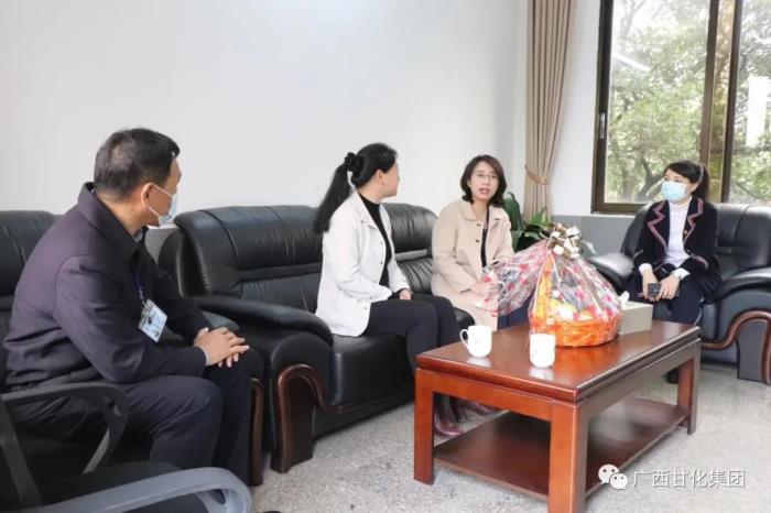 2021年1月26日,貴港市政協(xié)副主席劉東慶、市工信局副局長鄧塘建一行代表市委、市政府送來感謝信,向廣西貴港甘化股份有限公司及全體員工致以誠摯的問候和新年祝福;同日貴港市委統(tǒng)戰(zhàn)部常務(wù)副部長孫曉春一行代表市委人才工作小組到貴港甘化進(jìn)行走訪慰問活動。期間,劉東慶副主席、孫曉春副部長分別與集團(tuán)常務(wù)副總裁曹林希、貴港甘化總經(jīng)理黃敏昭、農(nóng)務(wù)副總劉曉東、人事總監(jiān)甘春鋒、總經(jīng)理助理梁衛(wèi)福進(jìn)行親切交流。