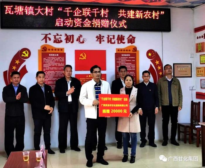 2021年3月11日下午,在貴港市應(yīng)急管理局組織的“千企聯(lián)千村,共建新農(nóng)村”啟動(dòng)資金捐贈(zèng)儀式上,廣西貴港市甘化酒精有限公司積極響應(yīng)號(hào)召,由總經(jīng)理覃志強(qiáng)先生代表公司捐贈(zèng)現(xiàn)金2萬元,為支持改造鄉(xiāng)村風(fēng)貌貢獻(xiàn)力量。