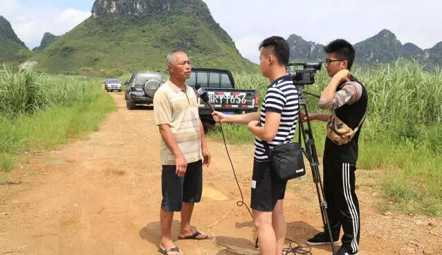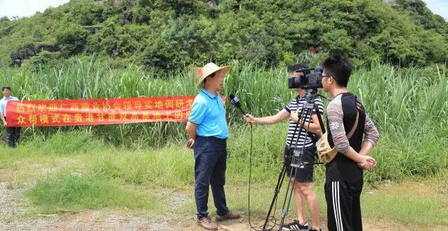 ▲貴港樟木顯滕甘蔗雙高基地承包戶黃崇明在接受廣西電視臺的采訪